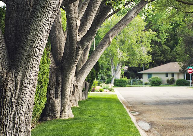 Decorative gravel with feature trees